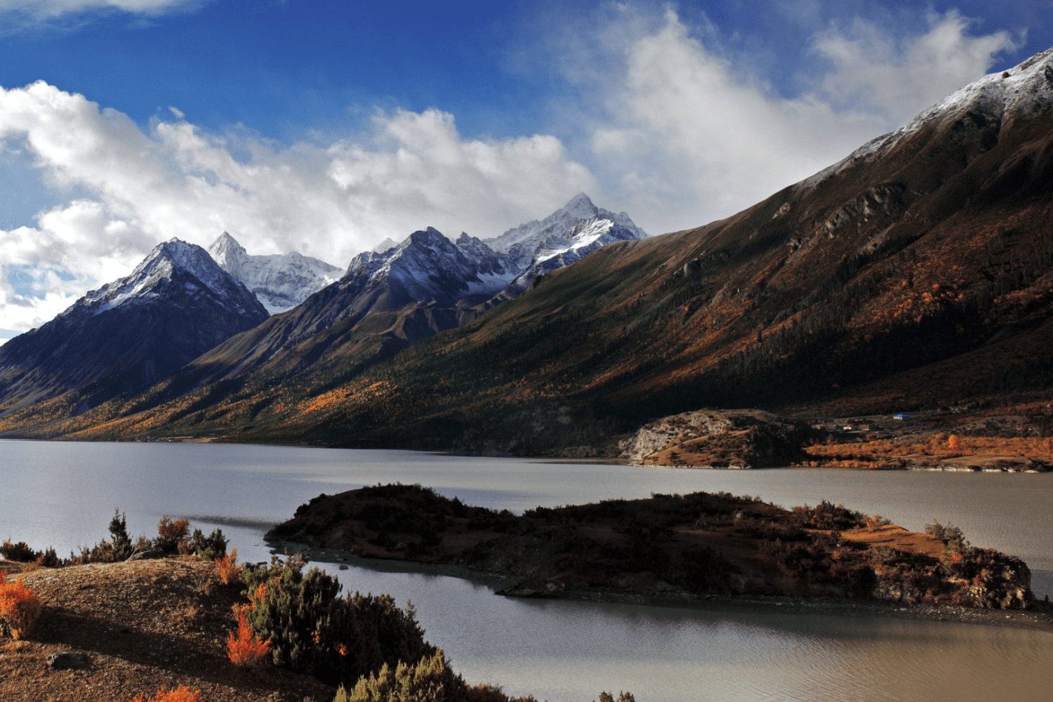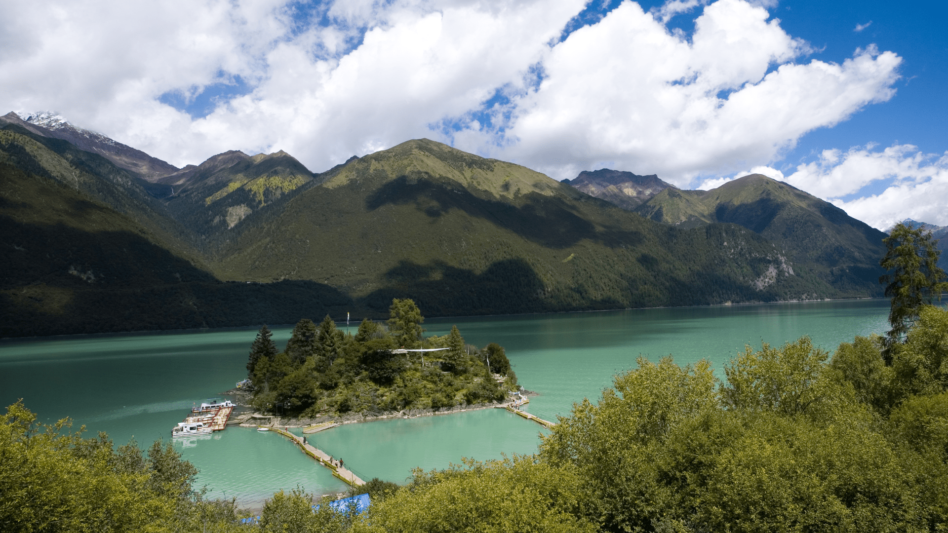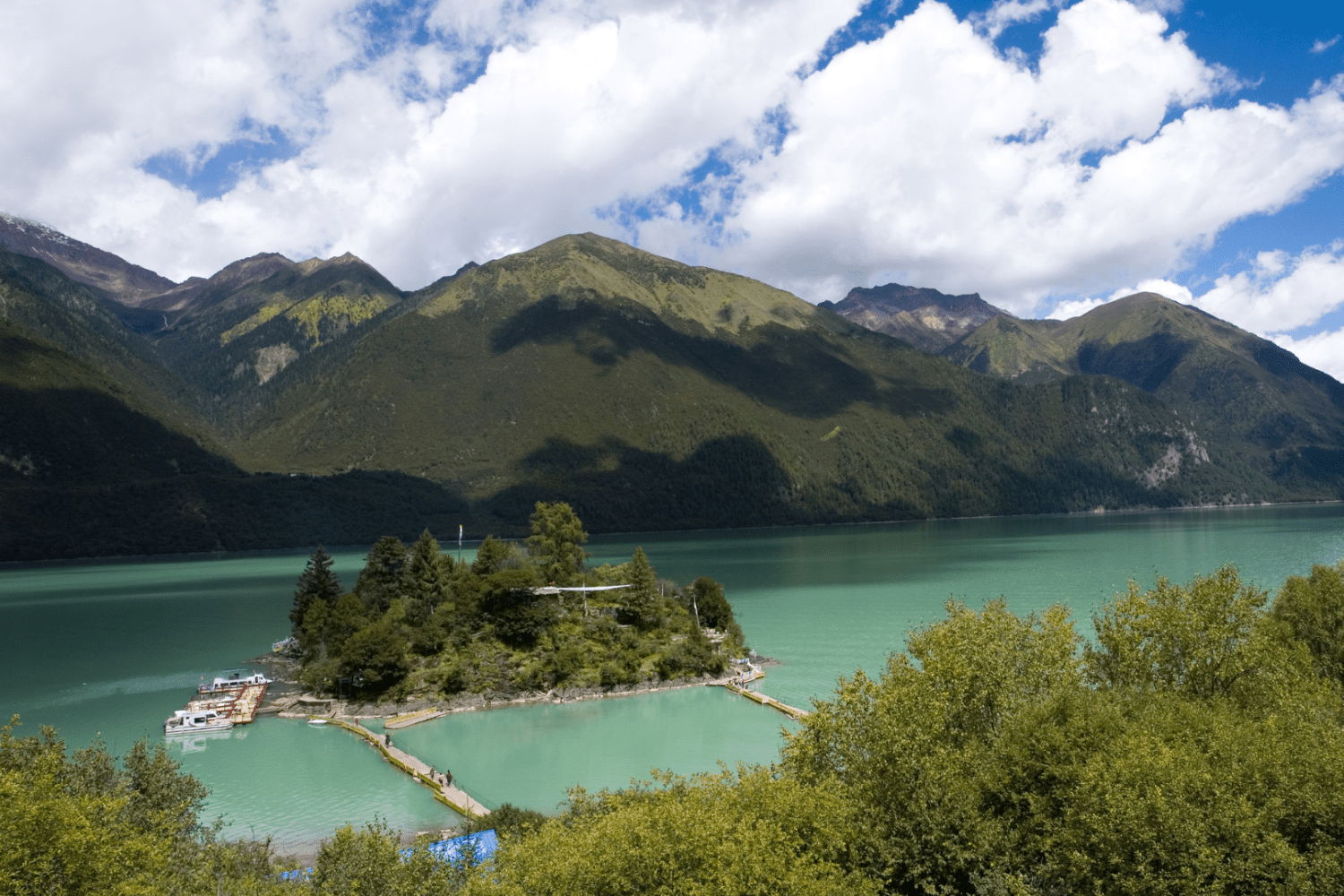 After breakfast, we’ll embark on a scenic drive to visit the most beautiful lake in Tibet, Basong Co, often referred to as the “Little Switzerland” nestled amidst snow-capped mountains and forests. Basong Co, also known as Cogo Lake, is an enchanting place where a crystal-clear lake rests serenely upon a bed of soft, green grass at the foot of snow-capped mountains and glaciers. There, we will board a wooden raft to visit the lake’s central “Immortal Island” for sightseeing and a leisurely hike. After our excursion on the lake, we’ll drive over the 5230-meter-high Mila Pass, passing through Mozhugongka and Dazhi Plain before reaching Lhasa. Along the way, we’ll enjoy the breathtaking natural scenery of the Nyangqu River Valley, one of Tibet’s most beautiful rivers. We’ll also make stops to see the Taizhao Ancient City, the “Zhongliu Di Zhu” (a natural rock formation resembling a pillar in the river), Apeixin Village, and Bangjie Tang Grassland.