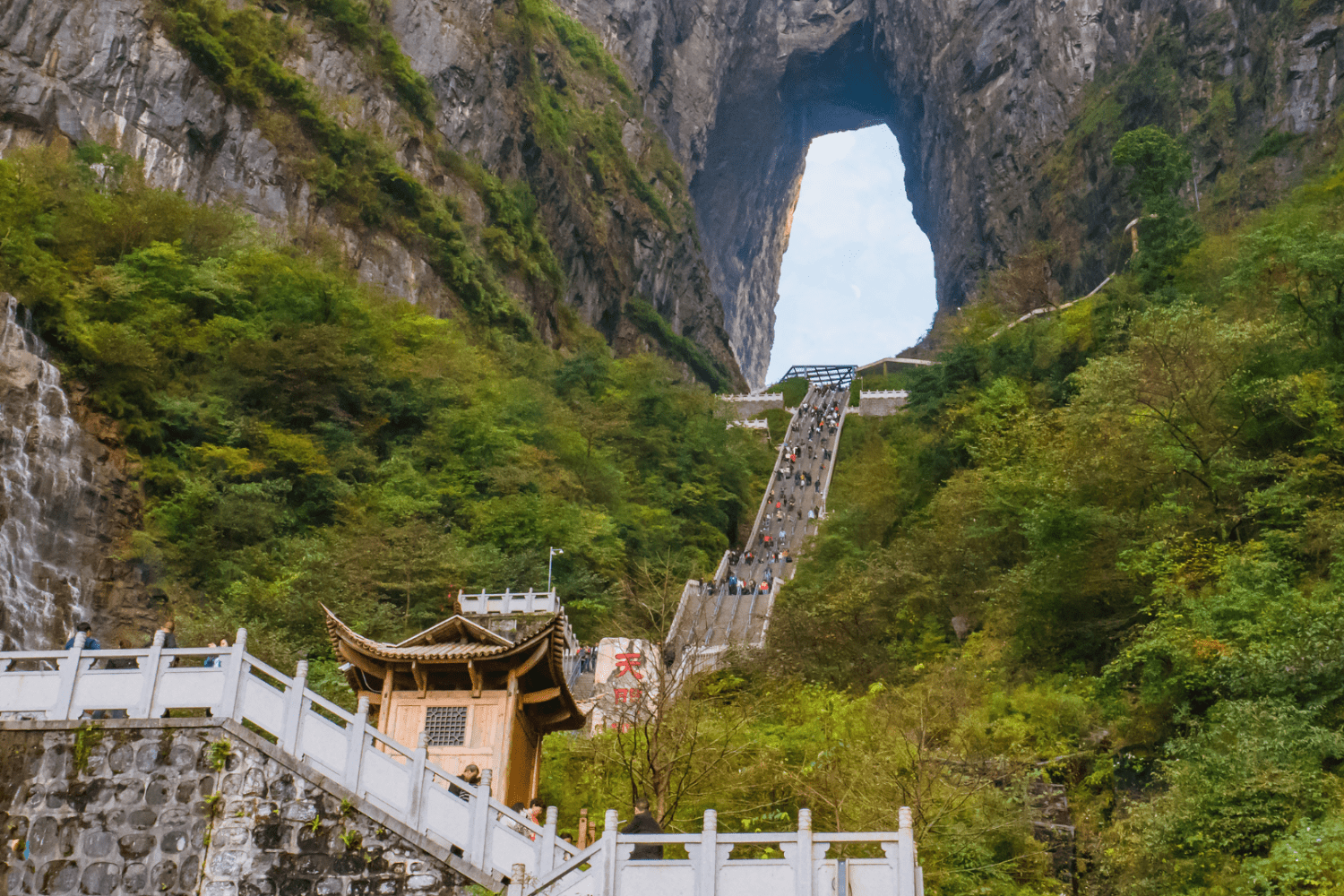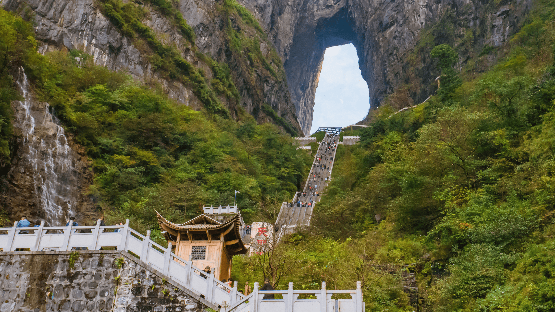 Today,take coach to Zhangjiajie, visit Compulsory tour: Tianmen Mountain National Forest Park. With numerous mystical legends, it’s regards as the holy mountain by the locals and also known as the “First Holy Mountain of Xiangxi” and the “Soul of Wuling”. You will take the World’s Longest Cable Car Ride up to the Mountain Top. The stunning views including ‘Heaven’s Door’, the thrilling cliff-hanging walkway and glass skywalk. After that vist Tujia Folk Customs Park.the Tujia Folk Custom Park is a replica of a typical Tujia village. It was built in 2000 with the intention to introduce visitors to the customs and traditions of the Tujia ethnic Minority. Tonight you can prefer join the