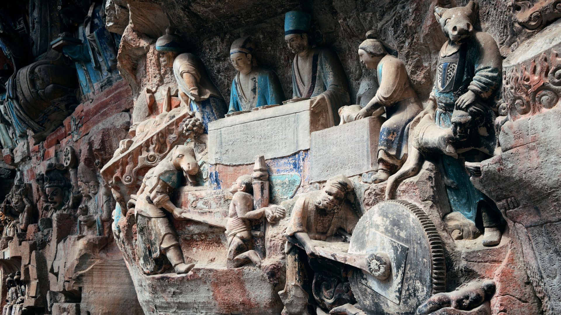 After breakfast, we will drive to Dazu, visit the Dazu Baodingshan Stone Carvings (include eco car). They are cliff carvings from the late Tang Dynasty and early Song Dynasty, mainly with Buddhist themes. For dinner, try Chongqing Mala Twin Hotpot, take a night cruise on the Two Rivers.
