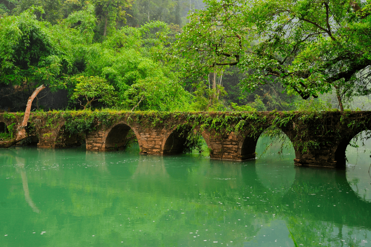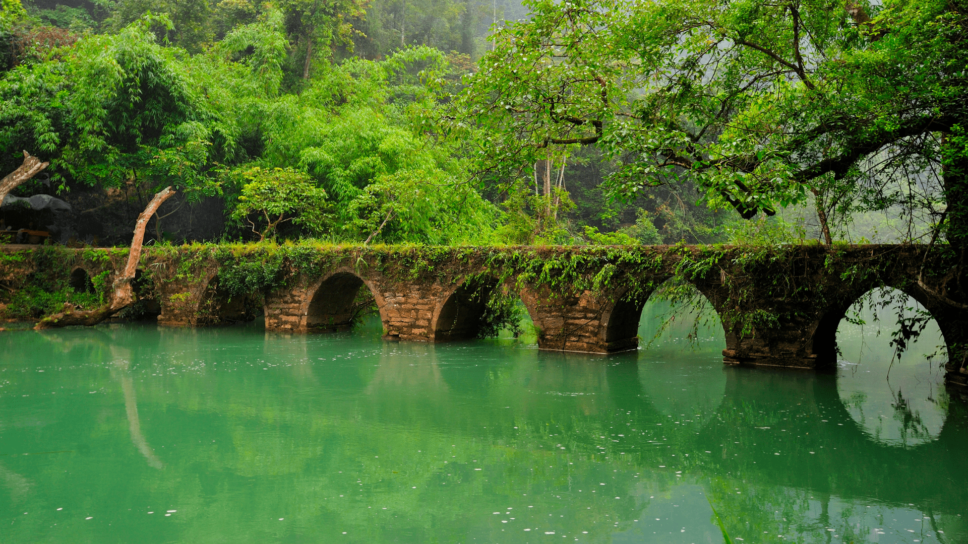 【Xiao Qi Kong Scenic area(Include Eco Car)】The attraction gets its name from a seven-arched bluestone bridge that crosses the noisy river there