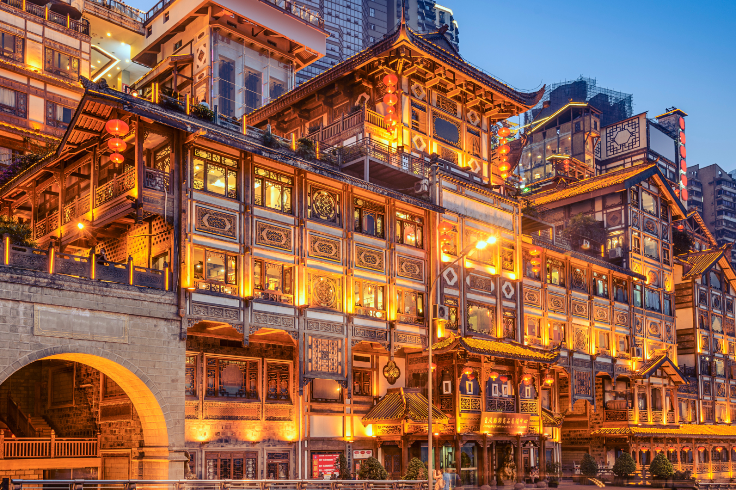 This morning youwill visit Jiaxiu Tower.Back to Chongqing.Upon arrival,proceed to【Hong Ya Dong】 It is a tourist area with functions of sightseeing and leisure vacations